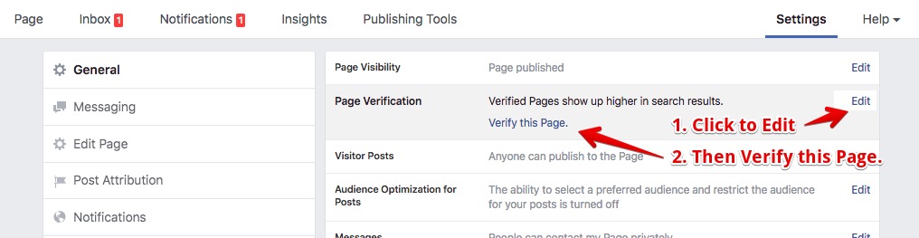 Verifying a Facebook page will help with the page’s SEO. An Administrator of the page will be able to do this.