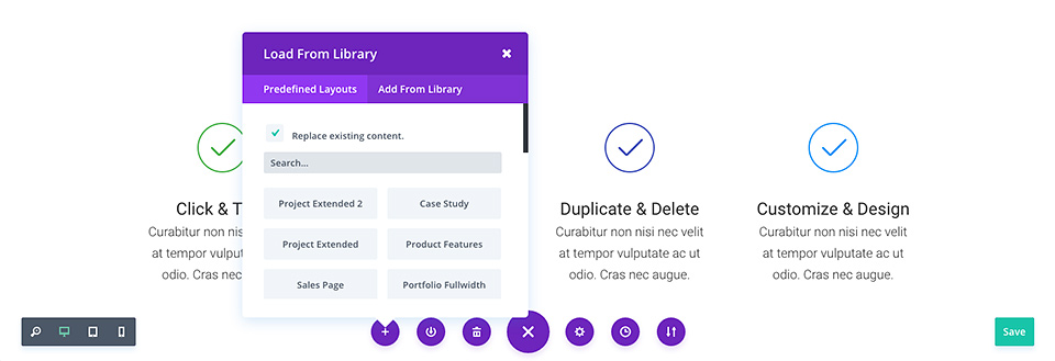 In addition to using the pre-made layouts that come with Divi, you can also save your own creations to the Divi Library. When a design is saved as a Divi Layout in the Divi Library, it can be loaded onto new pages. The more you build up your library with your favorite designs, the faster you will be able to create new websites. For an in-depth look at the Divi Library, be sure to check our our dedicated Divi Library tutorial